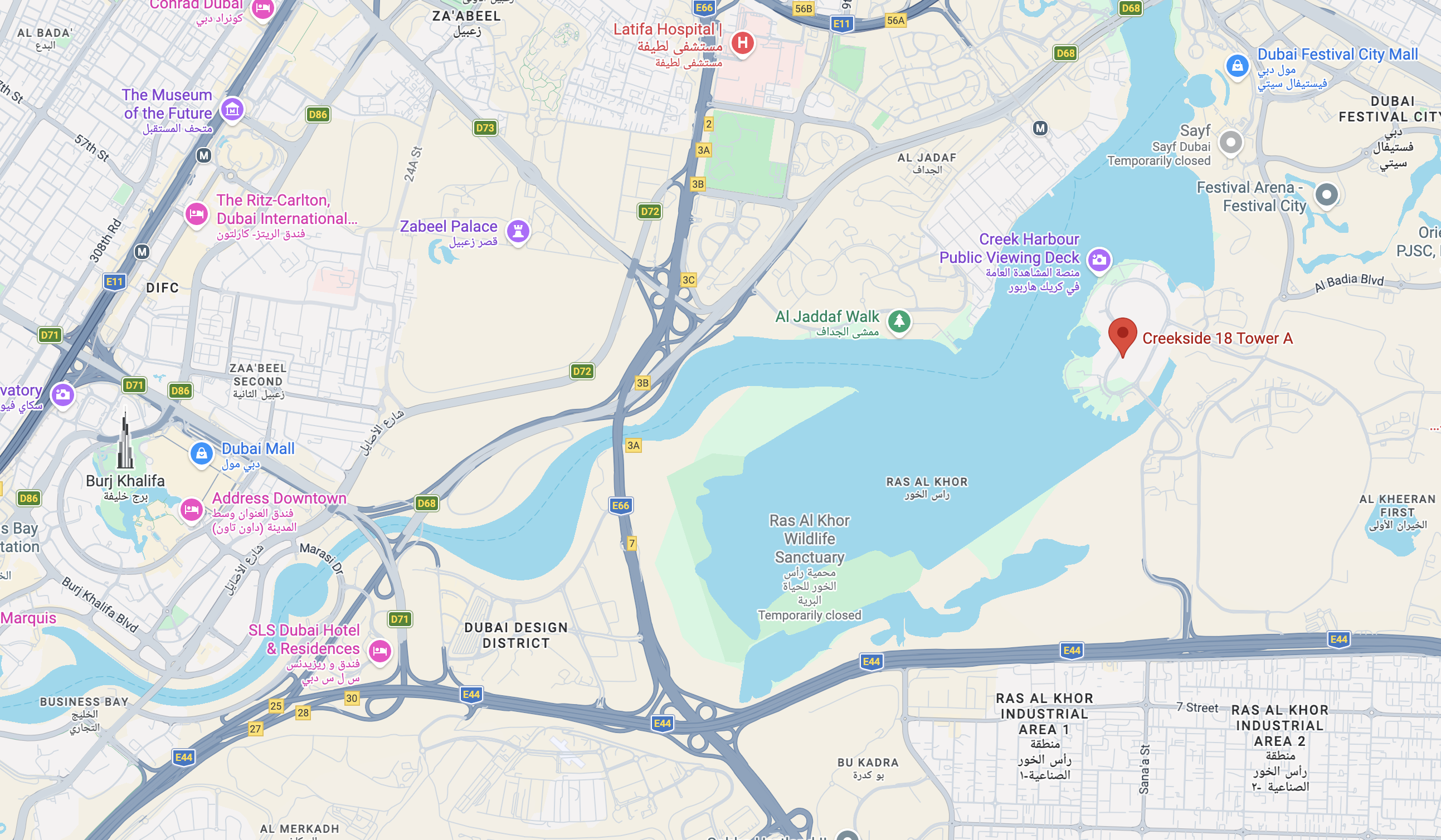Located within the Creekside 18 tower at Dubai Creek Harbour, this residence enjoys a prime position along the community’s vibrant waterfront. Surrounded by retail, dining, leisure, and lifestyle amenities, residents benefit from a well-connected urban setting in one of Dubai’s key waterfront districts.